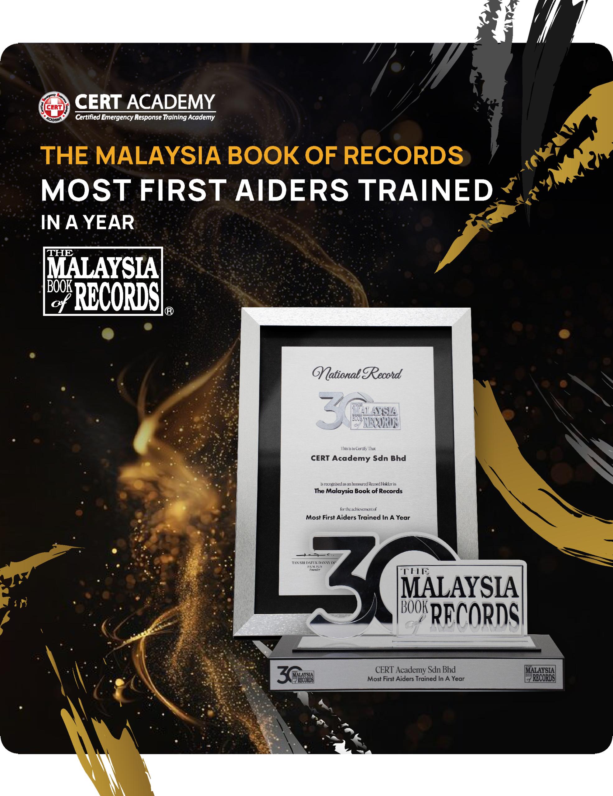 CERT Academy is now official in the Malaysia Book of Records for The Most First Aiders Trained In A Year. This milestone isn't just a number - it's a reflection of our unwavering commitment to creating a safer Malaysia, one trained heart at a time.
